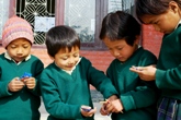 クマリとメヌカ姉妹は今年度から入学した新入生だ。2歳違いの姉妹は同じナーサリークラスで仲良く学んでいる。歓迎会等では姉妹が揃ってダンスを披露するなど、ヒマラヤ小学校の中でも人気者の姉妹だ。