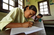 UPSBENに加盟している学校の殆どがラリットプール市(パタン市)の都市部にある私立学校だ。やはり都市部の学校の生徒達だけあって、村の子ども達よりも垢抜けた感じさえする。当初、普段とは異なる雰囲気にビナとラクシミも少し戸惑っている様子だった。これまで村から出たことが殆どない2人だから無理も無い。それでも、いざコンテストが始まると、2人とも用紙に向かい黙々と筆を走らせる姿は、見ていてとても頼もしかった。
