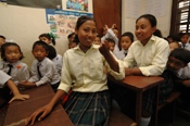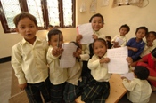 暫く幼稚園クラスで授業の様子を見ていると、子ども達が集まってきて『これを見て!見て!』と、覚えたばかりの字を書いたノートを一生懸命、見せてきた。される身になって、子ども達をしっかり誉めると、どの子も照れくさそうにして喜んでいた。子供達が学校へ入学して一番嬉しい事は、きっと字を覚えることだろう。字を覚えた喜びは教室の壁に書かれた落書きからも良く分かる。