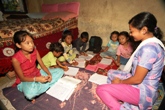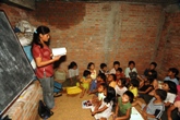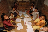 今秋、東京都内で子ども達の絵の展覧会のお話を頂いているので、展覧会に合わせてビベック君による子ども達への絵画指導が始まった。下絵の描き方や色の塗り方など、基本的な技術指導が行なわれているようだ。特に色塗りが苦手な子ども達には小さな画用紙に何本か線を引き、出来た枠の中に一色ずつ丁寧に色を塗る作業を繰り返しやらせているが、こうした基本をしっかり身につけさせる事が何よりも大切なんだと思う。