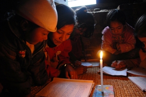 雑用を終え、大急ぎでコカナ村の寺子屋を訪ねた。今日は12/20のブログ記事にも書いた“お楽しみ会”の開催日。朝から雑用に追われてしまい、すっかり到着が遅れてしまった。丁度、コカナ村に到着した時には停電の最中で村中が真っ暗だったが、寺子屋の子供たちは蝋燭の小さな灯りの下で健気に勉強に励んでいた。覚えたばかりの数字を読み上げ自慢してくる子、弟や妹の名前が書けたと、ノートを嬉しそうに見せてくる子。小さな寺子屋は今日も子供たちの喜びと夢、そして熱気で溢れていた。子供たちの学びの熱意にはいつも胸が潰されそうな感動を覚える。