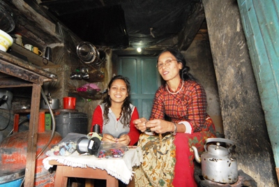 往診の途中、小川武明寺子屋を訪ねると、昨年ヒマラヤ小学校へ入学した小川寺子屋の卒業生シーマとビモラ姉妹が、今年ヒマラヤ小学校へ入学する後輩たちに一生懸命、学校について話をしていた。