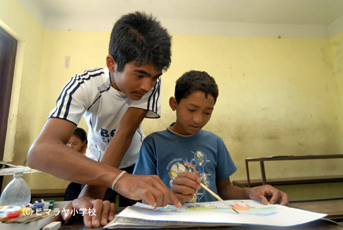 絵画教室では先生も驚くほどの実力を身につけたビベック君。昨年は絵画教室で学んだ知識を元に子ども達を熱心に指導してくれたお蔭で、ヒマラヤ小学校からたくさんの名画が生まれ、念願の絵画展を日本で開催することが出来た。ビベック君は今年、2度も絵画コンテストで優勝を果たすなど確実に腕を上げると共に、ヒマラヤ小学校の子ども達からは“絵のお兄さん”として親しまれている。