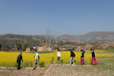 今日はネパールを短期訪問中の友人、ヤッギャ校長、現在、大学の法学部で学んでいる奨学生のリタ、そしてヒマラヤ小学校のラクシミ、ビナと一緒にデオラリ村を目指して歩くことにした。デオラリ村はカトマンズの南部にある山のほぼ頂にある小さな村。僕自身、往診治療でデヴィチョールやトックルマットといった周辺の集落へ泊まりがけで出かけた時など、時間が出来ると足を延ばす村だ。
