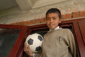 今日はアプスベン運動会の最終日。パタン市内の広場でサッカー大会・決勝戦が行われ、決勝戦に勝ち進んだ2チームに属している5名が、ヒマラヤ小学校から出場した。