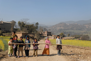 保護者と話をした後、水汲みに出かけているという兄弟を探すことにした。小さな村とはいえ、人を探すのは容易なことではない。こんな時、頼りになるのはヒマラヤ小学校の子ども達だ。ちょうど道中で会った子どもたちに手伝ってもらい、2人の姉弟を探す事にした。