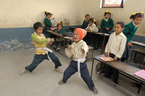 ヒマラヤ小学校で空手教室が始まって半年余り、子ども達の大きな変化を実感している。特に先月、初めて空手大会に出場してからというもの、少年カラテカ達の熱意は一気に高まり、稽古中の表情にもにも顕著に現われている。僕自身も稽古を見ながら頷く回数が多くなった気がする。ヒマラヤ小学校空手部の麒麟児、スニールなど以前にも益して空手熱を高め、やる気十分だ。相変わらず実戦は苦手のようだが、小さな体から出す闘志や覇気はかなりのもの。