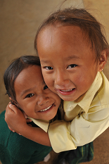 ヒマラヤ小学校で子ども達の様子を見ていると、ちょっとした言動が面白くて飽きる事はない。最近、ヒマラヤ小学校の低学年の子ども達の間では、どうもくるくる廻る遊びが流行っているようだ。誰が始めたのかしらないが、休み時間など教室の中でくるくる廻り、目を回わしてへたり込んだり、まっすぐ歩けなくなったりすることを楽しんでいるようだ。大丈夫かなぁと少々心配しながらも、実は見ている僕も結構楽しんでいたのだが、しかし、見て笑っているだけで許して貰えるはずなどない。先日、ついに子ども達から“あんたもやれ”コールが起こり、僕もくるくる回される事になった。こんなの何十年振りだろう。もともと平衡感覚が弱いせいか、4〜5回、回っただけでフラフラ。結局、ベンチに体を打ち付けへたり込む始末。子ども達には大いに笑われたが、時にはこうして子ども達の世界に入る事も大事な気がした。でも、この遊びだけは2度とやりたくないなぁと思う。
