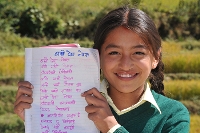 5年生のリタが詩を書いて驚いていると、なんと同級生のロシャナも詩を書いてきた。リタの活躍に刺激を受けたのだろうか、最近、5年生の成長が著しい。私たちの国 ネパール ロシャナ・マハルジャン