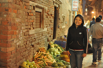 アシュミタは12学年を終了した後、小学校の教師として働き始めたものの、自らの知識不足を痛感し、一念発起、昨年から早朝の大学で学び始めた。アシュミタへの支援は12学年卒業と同時に既に終了となっていたのだが、勉強したいというアシュミタの気持ちを少しでも応援できればと、支援者の方の善意の支援の下、現在は学費の一部援助を行っている。アシュミタの母親は、長年務めていたパシュミナ工場が閉鎖となり、1年ほど前に失業。その後、アシュミタの勧めで家の軒先で野菜の販売を始めた。アシュミタは僕が出会ったばかりの頃、鉛筆を買うために道端でみかんを売っていた苦労人でもある。その時の経験が今、生かされているのかもしれない。