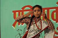 先日、「アガンコ プラティバ」の予選がカトマンズ郊外の某スタジオで行われた。(予選の模様もテレビで放映される)ネパール各地の学校からお踊り自慢の子ども達が集まっているだけに、スタジオ内は物凄い熱気に包まれていたが、プジャはそんな雰囲気に負けることなく、普段通りのびのびとダンスを披露することが出来、無事、予選を通過することが出来た。さて本番ではどうなるか。みんなでプジャを応援したいと思う。がんばれプジャ!!