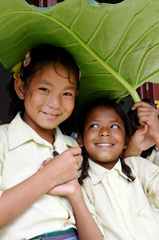 休日、村の往診先に向かっていると、後ろから「ナマステ〜」という元気な声が聞こえてきた。が、振り向くと誰もいない。なるほど児童の誰かが僕を驚かせようと企んでいるに違いないと思い警戒していると、5年生の女の子達が笑いながら木陰から顔を出して来た。どうやら警戒する僕の姿が滑稽だったらしく、驚かす前に笑ってしまったようだ。子ども達は牛の乳搾りや飼葉集め、水汲みなど朝の手伝いを終え、村のお寺に集まって話をしていたところ、歩いている僕を見かけ、後ろからこっそりついて来たようだ。最近ではすっかりお姉さん役が様に成っている5年生だが、実際はまだまだお転婆盛りの子ども達。何をしても大笑いできてしまうのも、無邪気な年頃の特権なのかもしれない。