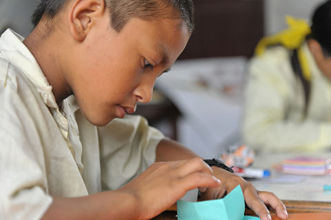 さて、今日の折り紙の授業で印象に残った事があった。ヒマラヤ小学校のヤンチャ大将こと4年生のアニシュ(アニール)の変化だ。アニシュは勉強よりも体を動かすことが好きで、ヒマラヤ小学校の初代ガキ大将のクマールに負けず劣らずのヤンチャぶりを発揮している元気な児童だ。子ども達の間の何か問題が起こると、必ずと言っていい程アニシュが絡んでいて、授業中は女子に消しゴムを投げつけたり、前に座った児童の背中に鉛筆で落書きをしたりと、アニシュが静かに机に座って勉強するなんて事はほとんどない。若い先生などアニシュのヤンチャぶりに手こずり、お手上げの状態になる事も多い。