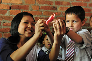 さてアシュミタの授業だが、僕の想像をはるかに超え素晴らしい内容だった。常に笑顔で子ども達と接している点、定位置ではなく教室を回り、一人ひとりの子ども達に気を配りながら授業を進めている点、教室がきちんと整理整頓されている点、常に目線を下げ子ども達と会話をしている点など、数えるときりが無いが、どれも出来るようでなかなか出来ない事ばかりだ。持ち前の明るさと優しさが教師という職業に上手く生かされているのだろう。学校長もアシュミタを高く評価していた。